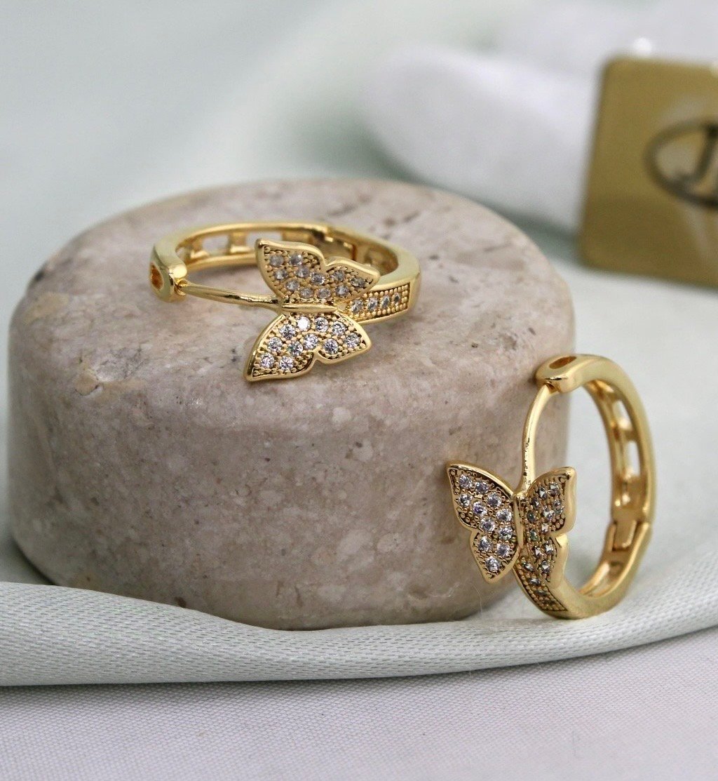 BRINCO ARGOLA BORBOLETA CRAVEJADO ZIRCÔNIA BANHADO A OURO 18K