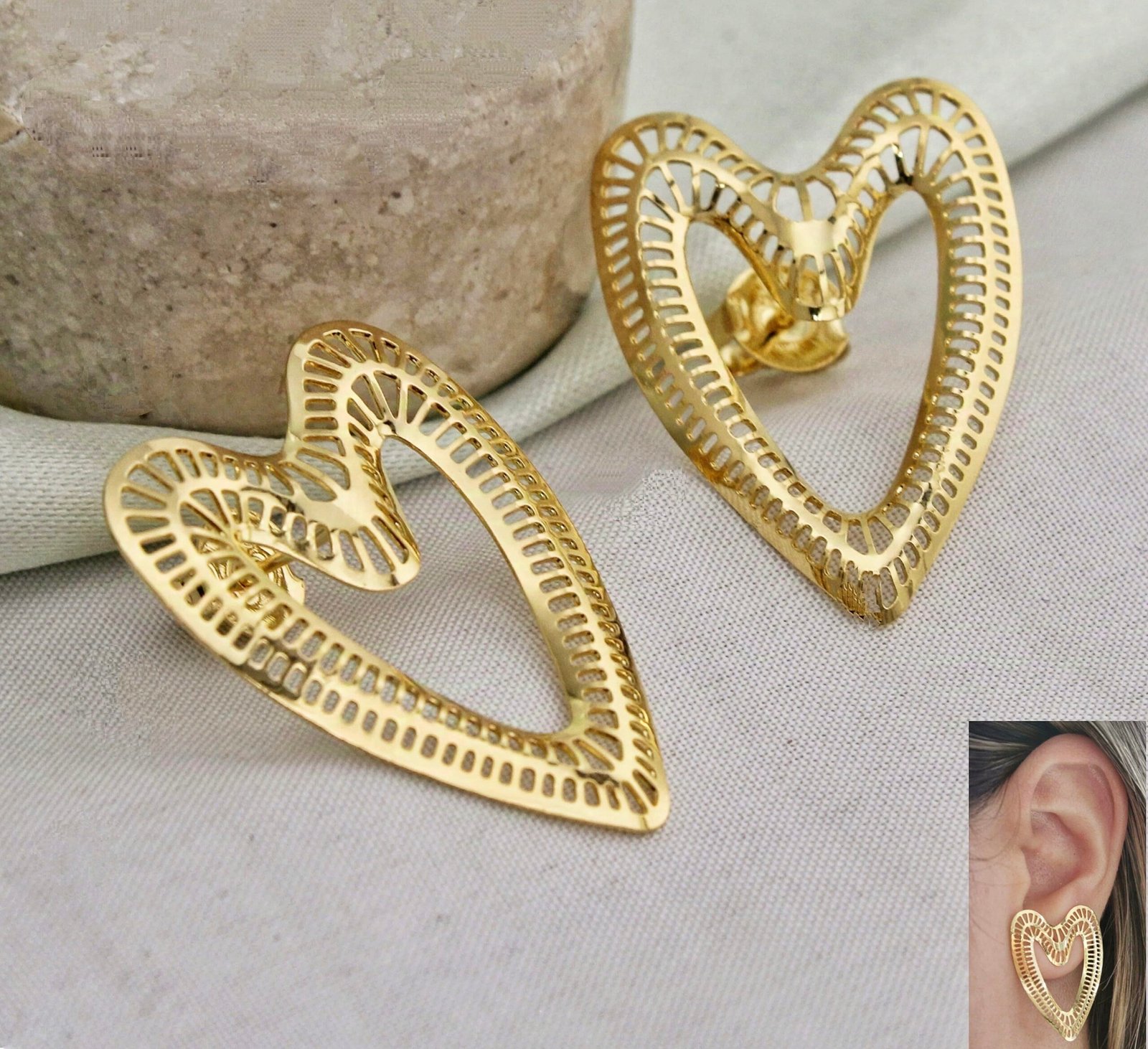 BRINCO CORAÇÃO VAZADO BANHADO A OURO 18K