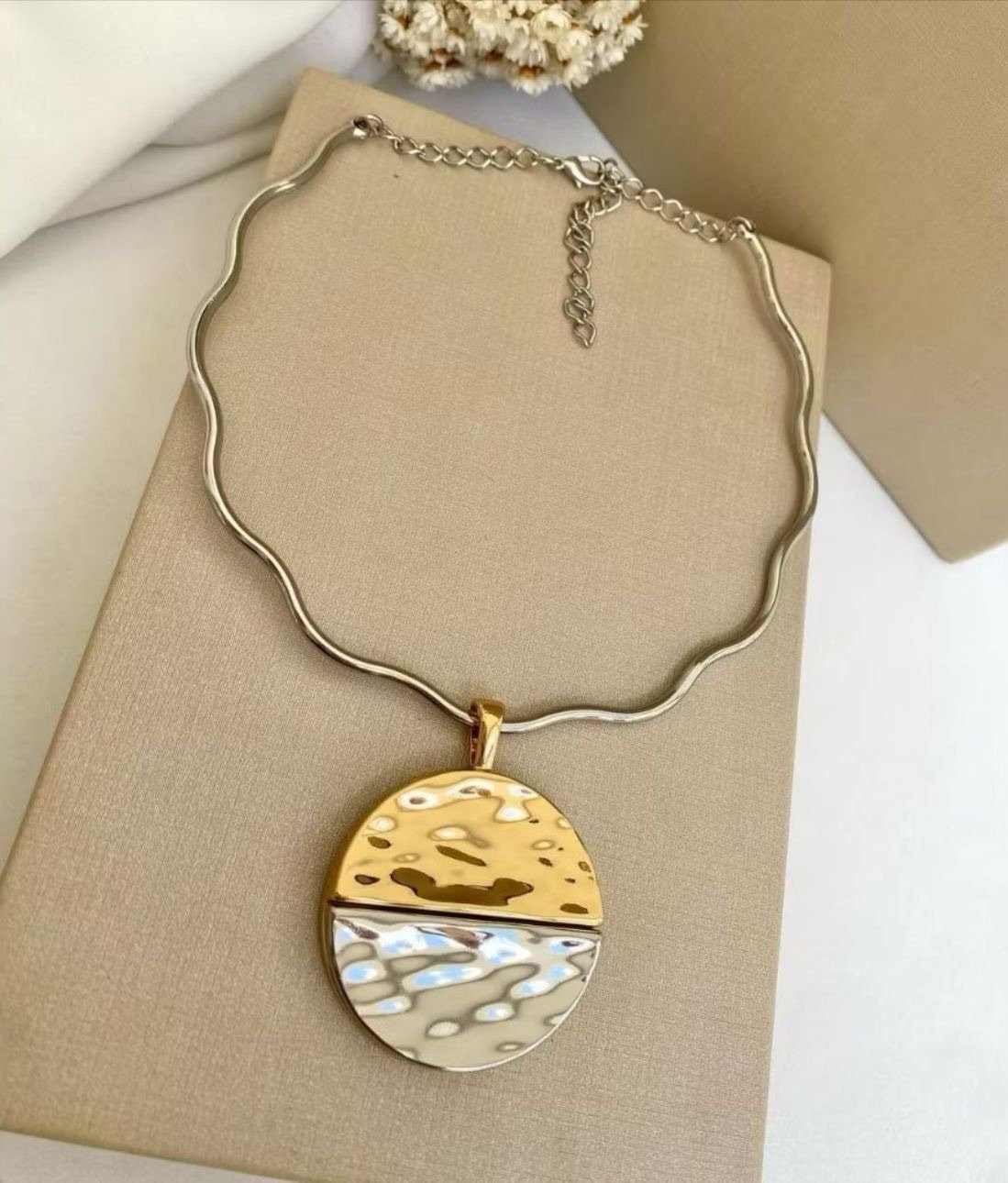 COLAR ARO ONDULADO PRATEADO COM PINGENTE MARTELADO quantidade
