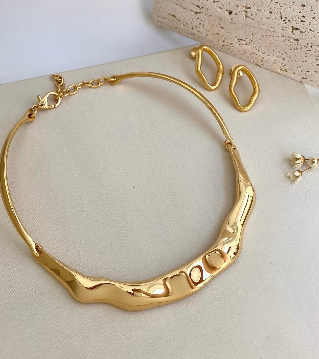 COLAR ARO ORGÂNICO MARTELADO DOURADO