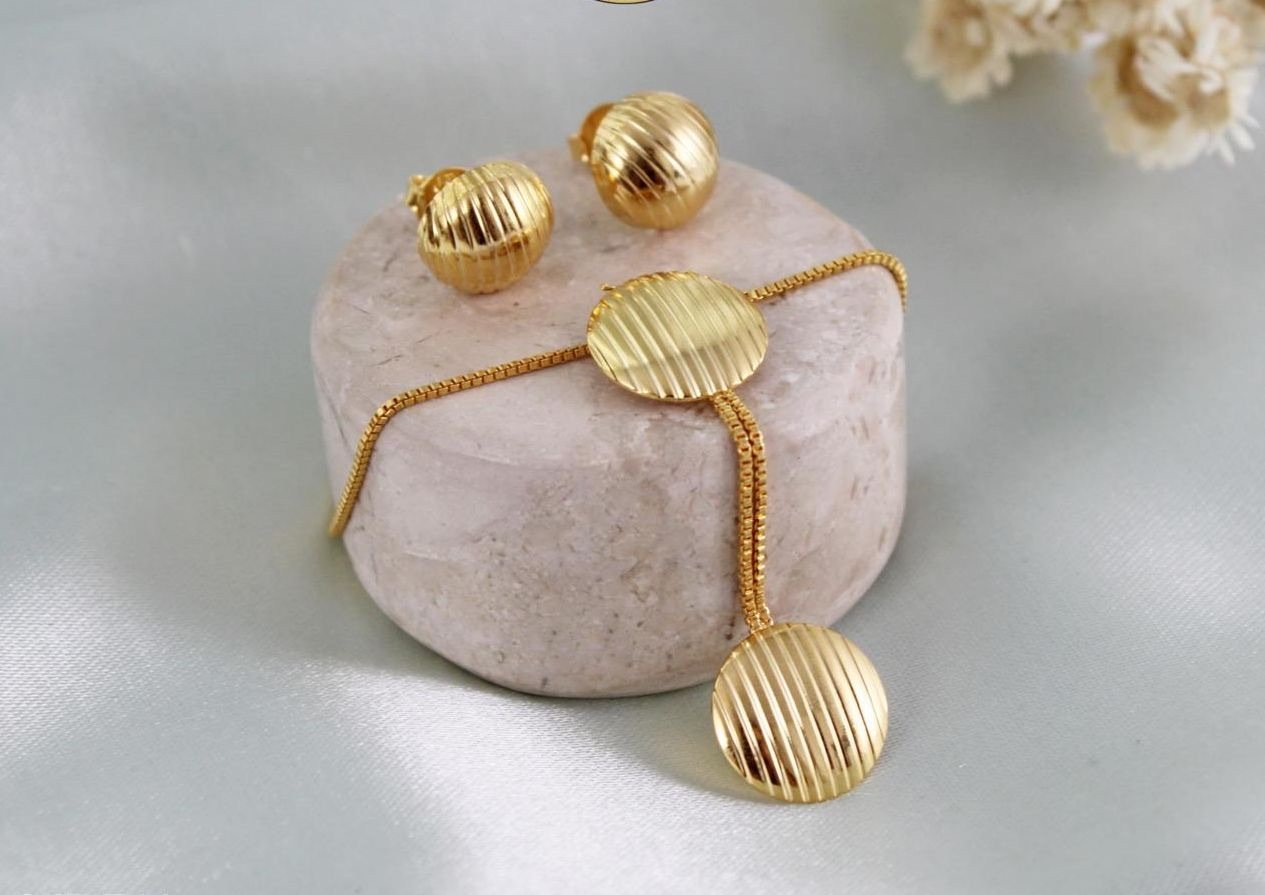 CONJUNTO BRINCO E COLAR NAIARA BANHADO A OURO 18K