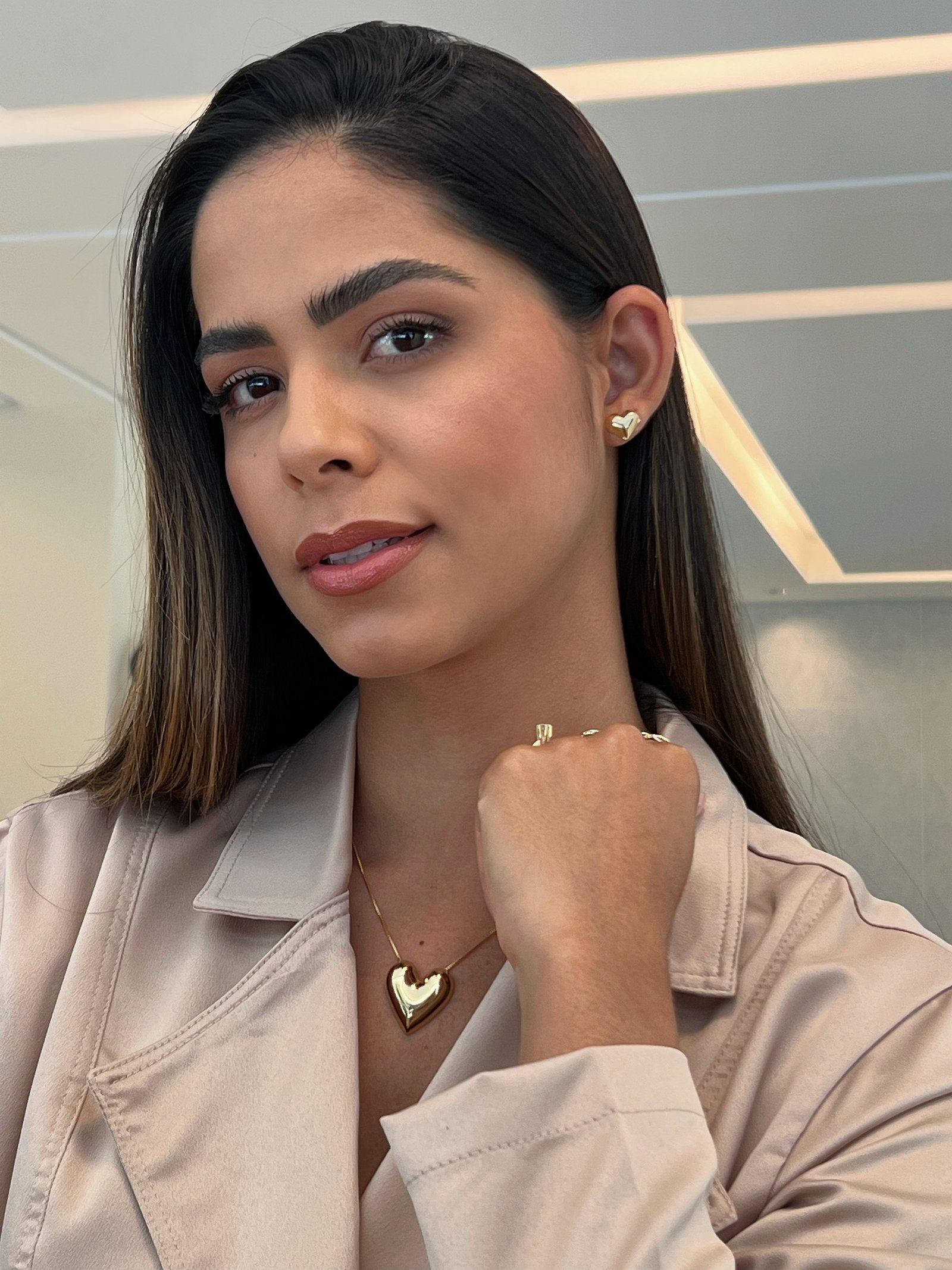 CONJUNTO BRINCO E COLAR CORAÇÃO BANHADO A OURO 18K
