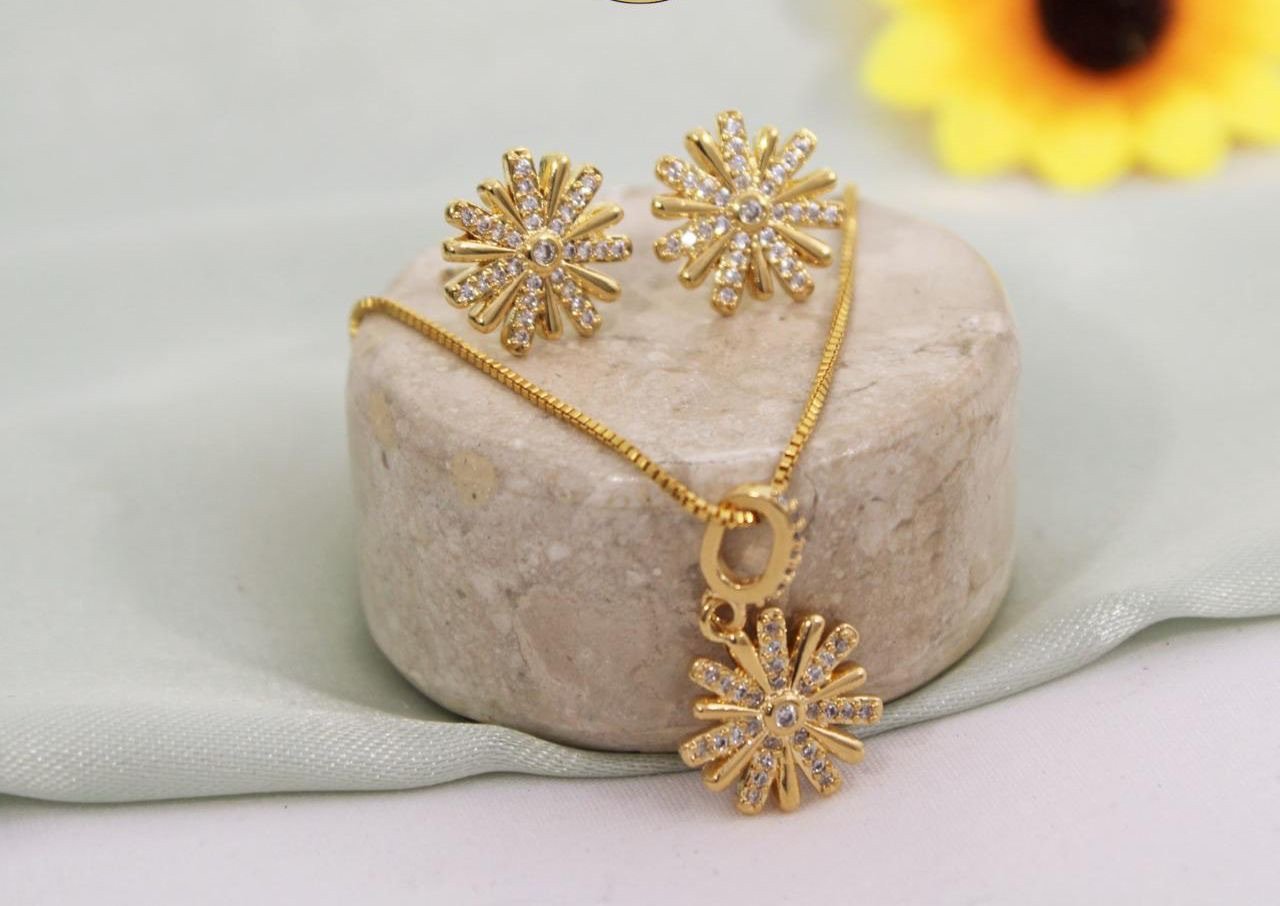 CONJUNTO BRINCO E COLAR AURORA BANHADO A OURO 18K